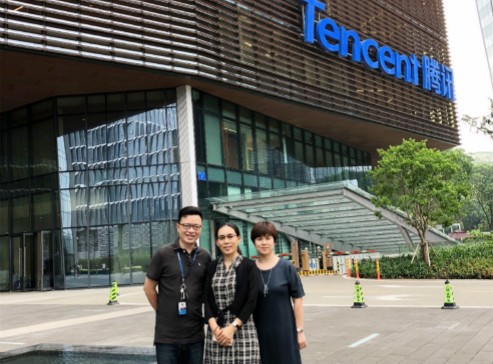 李總(中間)與騰訊員工健康項(xiàng)目負(fù)責(zé)人(左一)合影