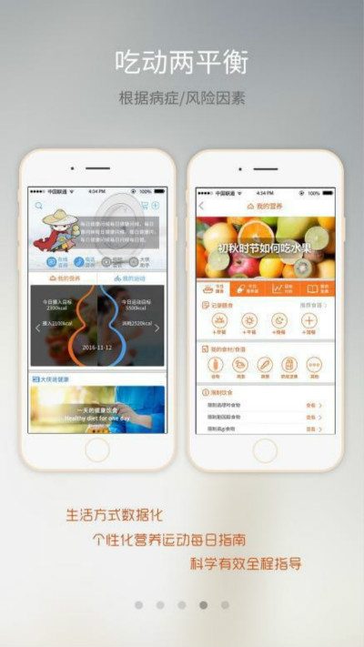 健康生活方式數(shù)據(jù)化:營養(yǎng)和運動指導(dǎo)不再概念化理論化,有目標(biāo)和數(shù)據(jù)分析的個性化營養(yǎng)運動每日指南和信息記錄以及實時評估,你會第一次真正的知道對于你自己的健康而言,飲食的結(jié)構(gòu)和量對不對,運動方法和量科學(xué)與否,智慧的飲食,科學(xué)的運動,健康得到最大的保障。