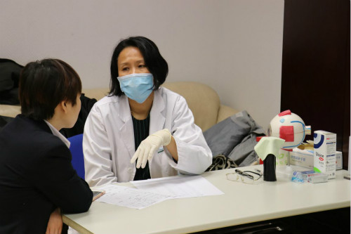 健康管理師為企業(yè)員工貼耳穴